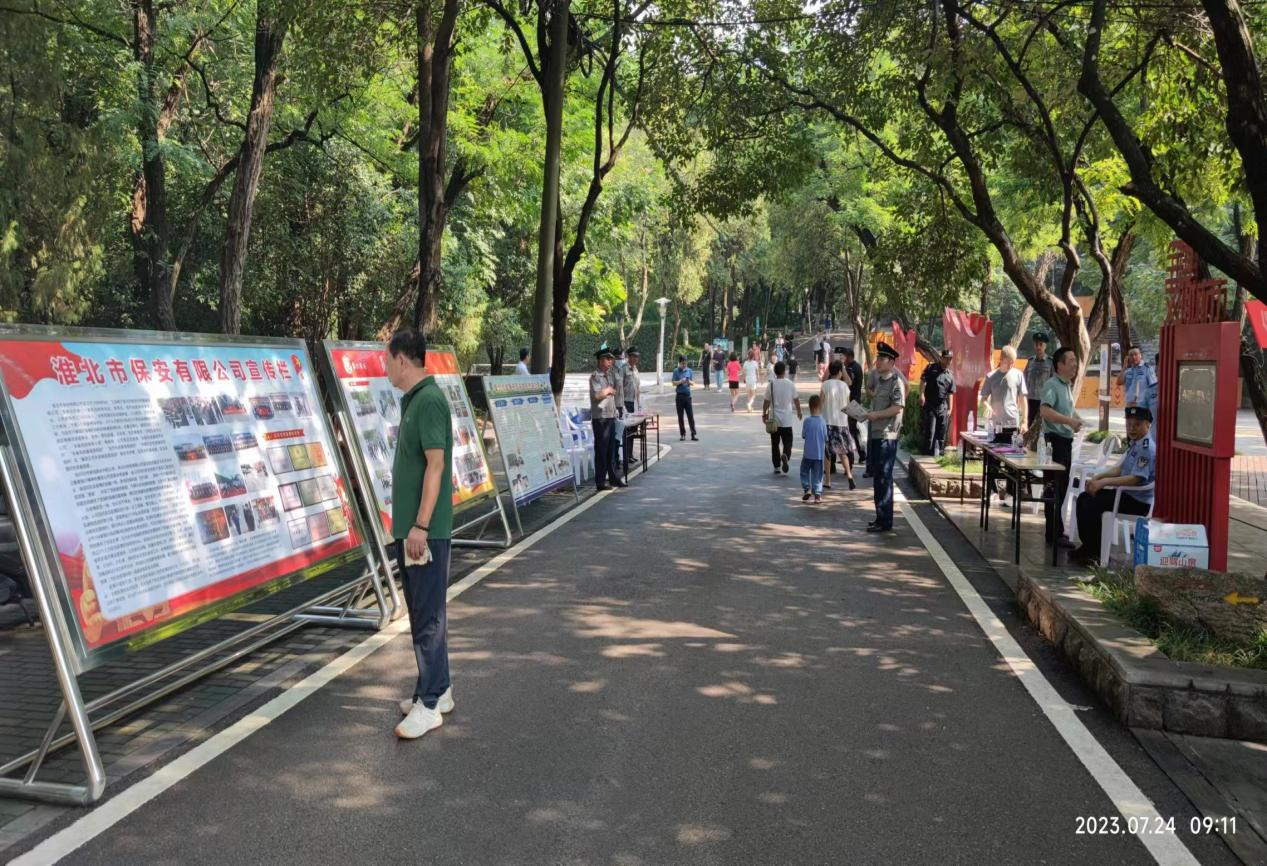 7月24日上午,為廣泛宣傳保安行業(yè)在維護(hù)社會和諧穩(wěn)定、保障人民安居樂業(yè)、促進(jìn)經(jīng)濟(jì)社會發(fā)展等方面取得的成效。淮北市保安監(jiān)管支隊、淮北市保安有限公司在相山公園組織開展以“保安心向黨、護(hù)航新征程”為主題的保安行業(yè)宣傳活動。市保安監(jiān)管支隊支隊長孫兆良、政委曹輝、公司總經(jīng)理吳信威、押運(yùn)人防隊員等13人參加了宣傳活動。