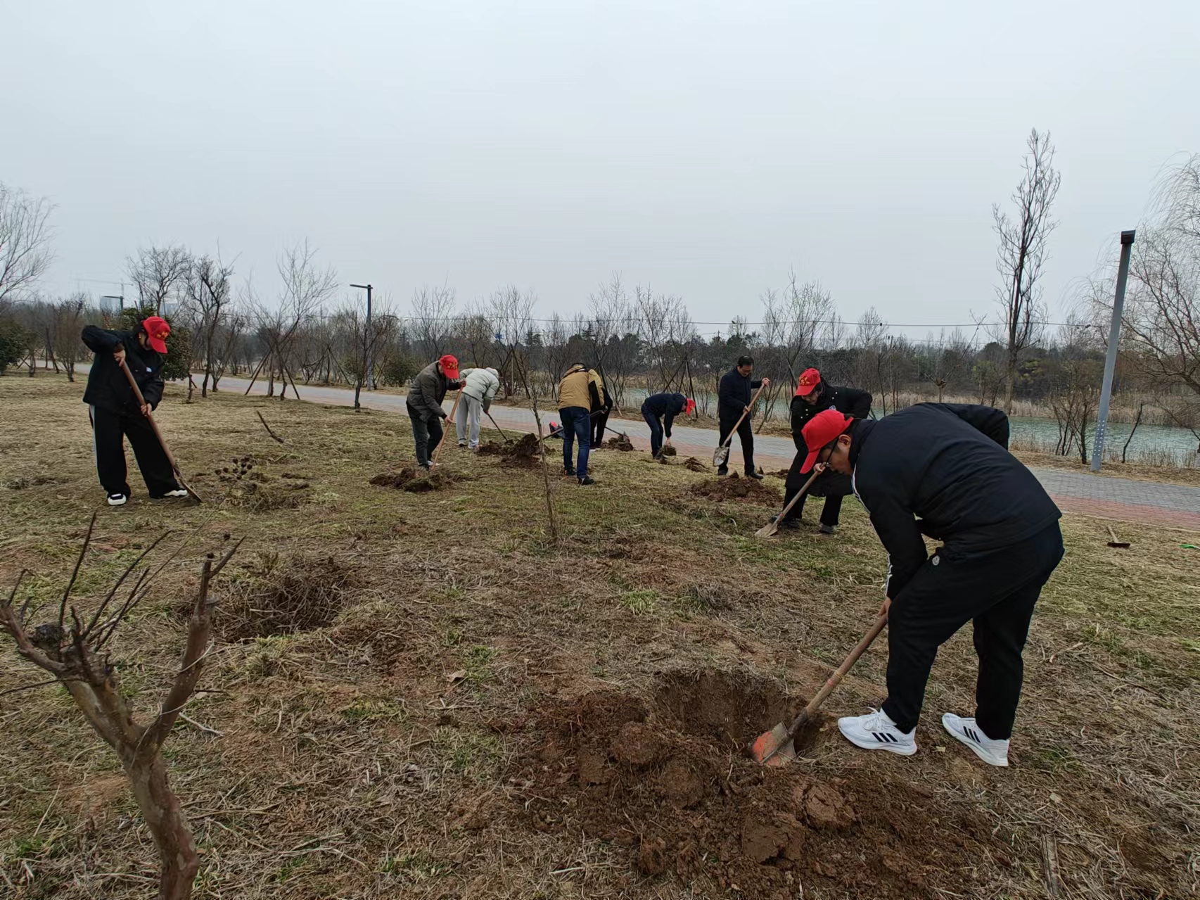 冒著毛毛細(xì)雨,南湖傳媒黨支部全體黨員前往南湖公園進(jìn)行活動(dòng)。他們有的拿著夾子和掃帚,對(duì)公園道路兩側(cè)及草坪內(nèi)的垃圾、紙屑、煙頭進(jìn)行清理。有的前往“植樹區(qū)”進(jìn)行挖坑、培土、澆水。每個(gè)人都奮力在自己“崗位”上,為打造美好家園貢獻(xiàn)自己的力量。