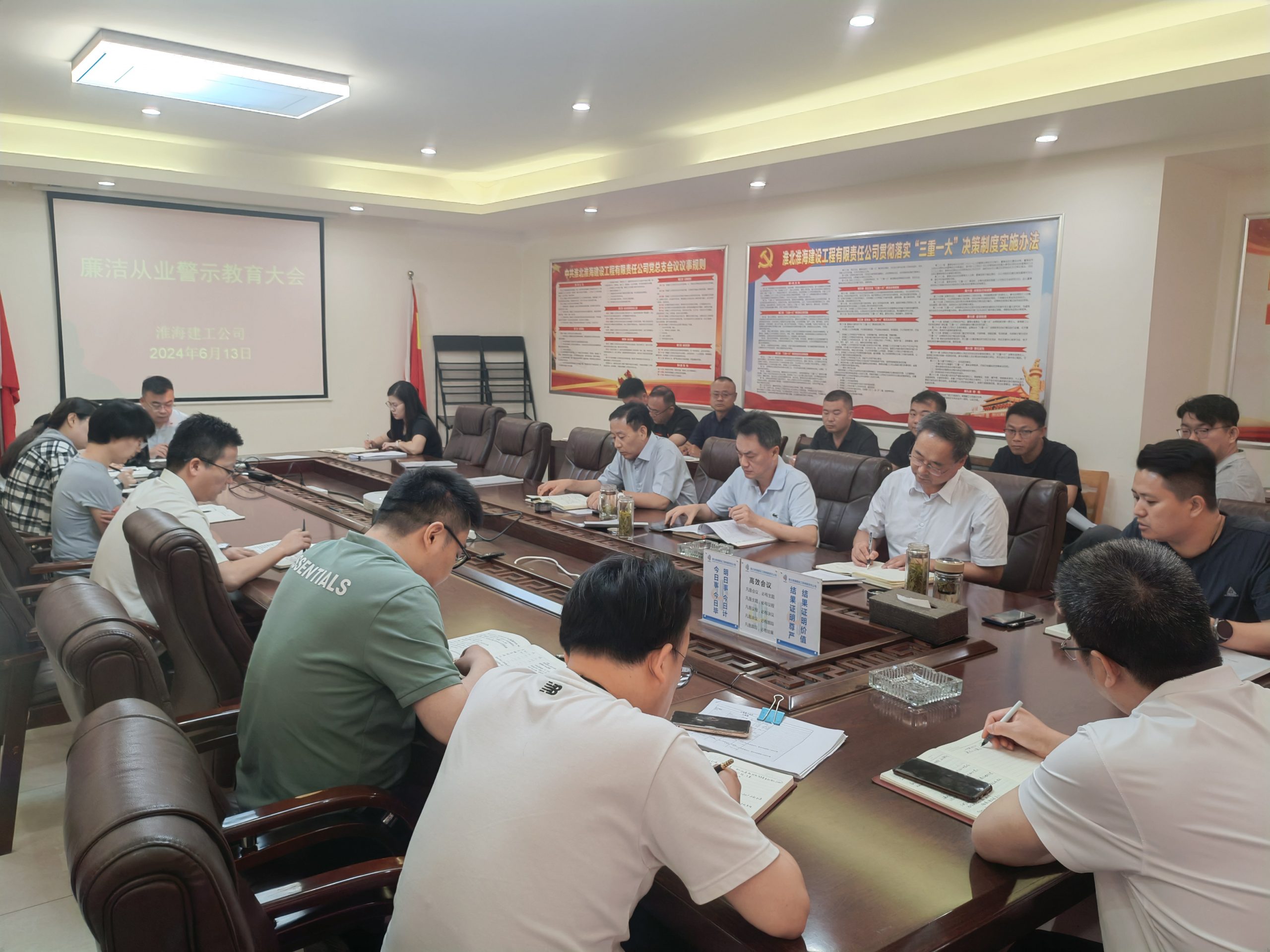2024年6月13日上午,淮海建工公司召開廉潔從業(yè)警示教育大會,公司班子成員、部門負責人、項目經(jīng)理參加了會議。