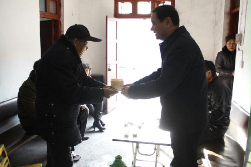 2011年12月10日上午,淮北市建投控股集團有限公司黨組書記、總經(jīng)理任啟峰、副總經(jīng)理宋平等領導同志來到烈山區(qū)宋疃鎮(zhèn)雷山社區(qū)看望貧困黨員,并送上了米、油等生活用品。