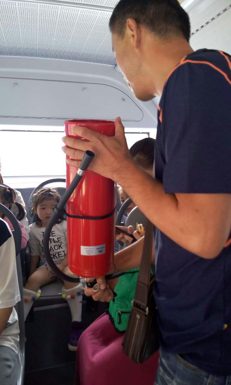 孩子們?cè)诩议L(zhǎng)陪同下,來(lái)到107路實(shí)驗(yàn)三小站臺(tái),工作人員詳細(xì)向孩子們講解安全文明乘車需要注意的事項(xiàng)。如何有序地安全上、下車?進(jìn)車廂內(nèi)為什么要扶穩(wěn)坐好?在公交車上與親人走散后怎么辦?如何使用安全錘、滅火器等常見(jiàn)的安全問(wèn)題,提醒孩子們及家長(zhǎng)乘坐公交車一定要遵守乘車秩序,安全文明乘車。接著,工作人員邀請(qǐng)小朋友及家長(zhǎng)乘坐107路公交車,并模擬乘車過(guò)程遇到急剎車等突發(fā)狀況時(shí)的情景。同時(shí)與小朋友們互動(dòng),演示安全錘和滅火器的使用方法,這一環(huán)節(jié)受到家長(zhǎng)的鼓掌點(diǎn)贊。