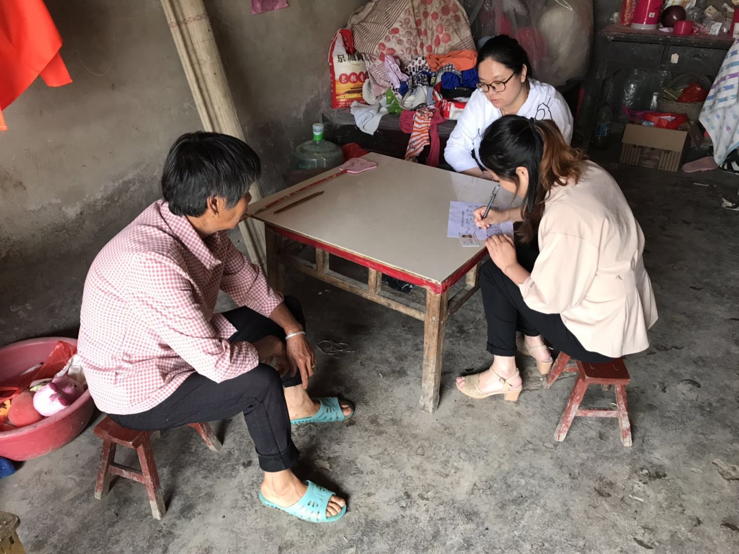 圖為:商貿(mào)公司幫扶小組現(xiàn)場了解幫扶對象各項信息。