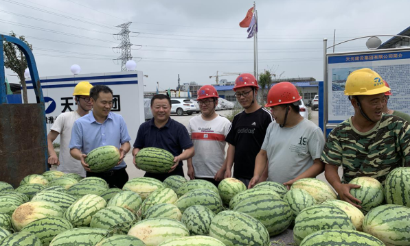 時(shí)值炎炎夏日、酷暑三伏,臨投公司各在建項(xiàng)目施工一線人員依然堅(jiān)守在工作崗位上,為煤化工基地的發(fā)展揮灑著汗水。為了給施工一線人員送去絲絲清涼和關(guān)懷,臨投公司于7月18日前往火神廟村貧困戶戴鳳英家購買了愛心西瓜2200斤,并赴各在建項(xiàng)目現(xiàn)場,將愛心西瓜送到了施工一線人員手中,向他們在高溫酷暑中的辛苦勞動表示慰問,并要求各施工單位做好防暑降溫工作,確保施工安全。