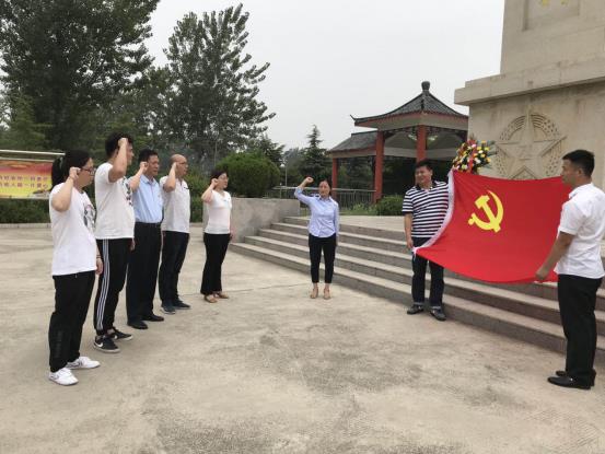 圖為建投商貿(mào)黨支部副書(shū)記金曉莉同志組織支部黨員在相山革命烈士陵園前莊嚴(yán)宣誓。
